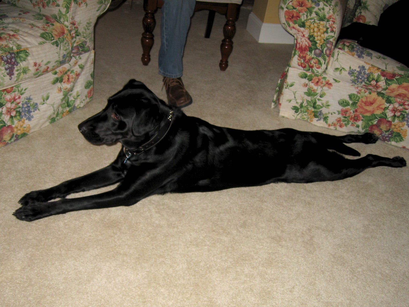 My grandson, "On the verge of slithering around the livingroom."
